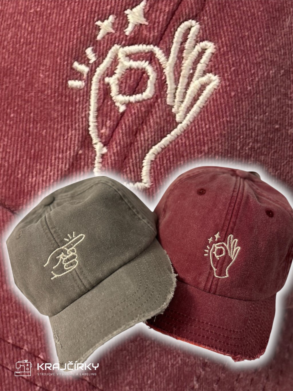 100% bavlna. Balenie obsahuje 2 ks šiltoviek s dizajnami na fotke. Vlastná 100% slovenská výroba výšivky - od návrhu cez prevedenie do výsledného produktu.