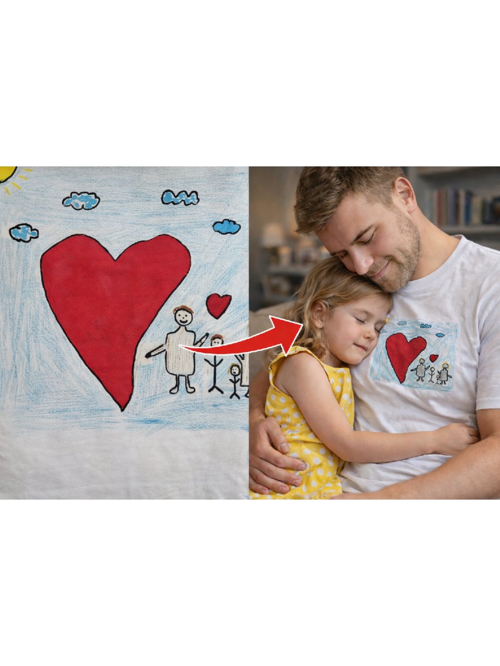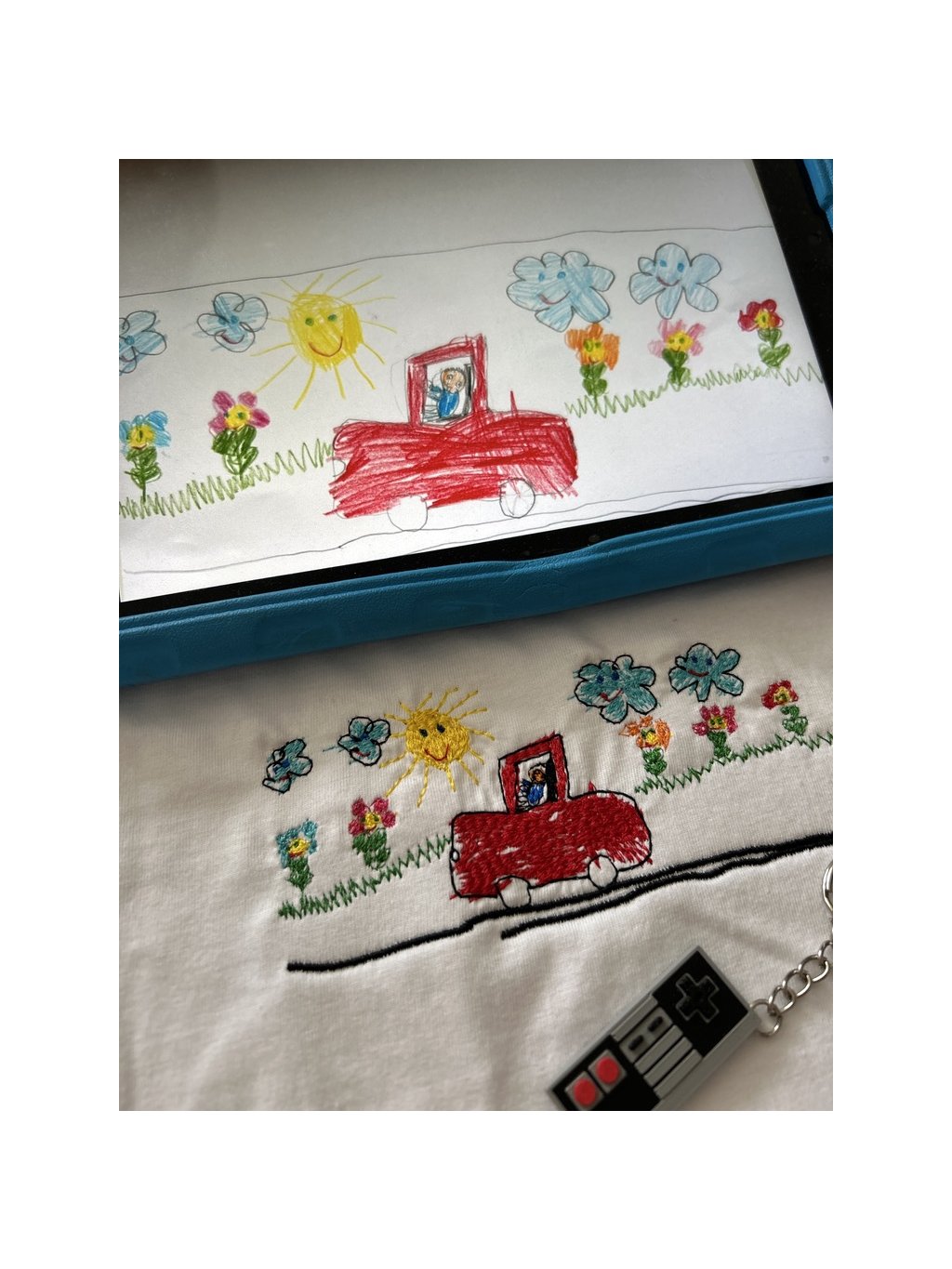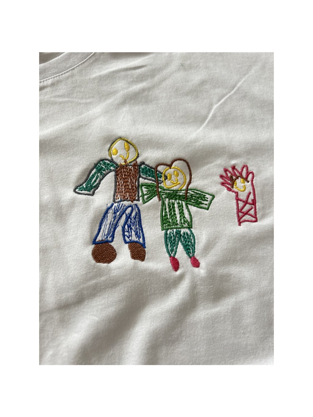 Vyšitá kresba na tričko je originálny personalizovaný produkt vytvorený podľa detskej kresby. Kresbu spracujeme do podoby strojovej výšivky tak, aby si zachovala svoj autentický, detský charakter.